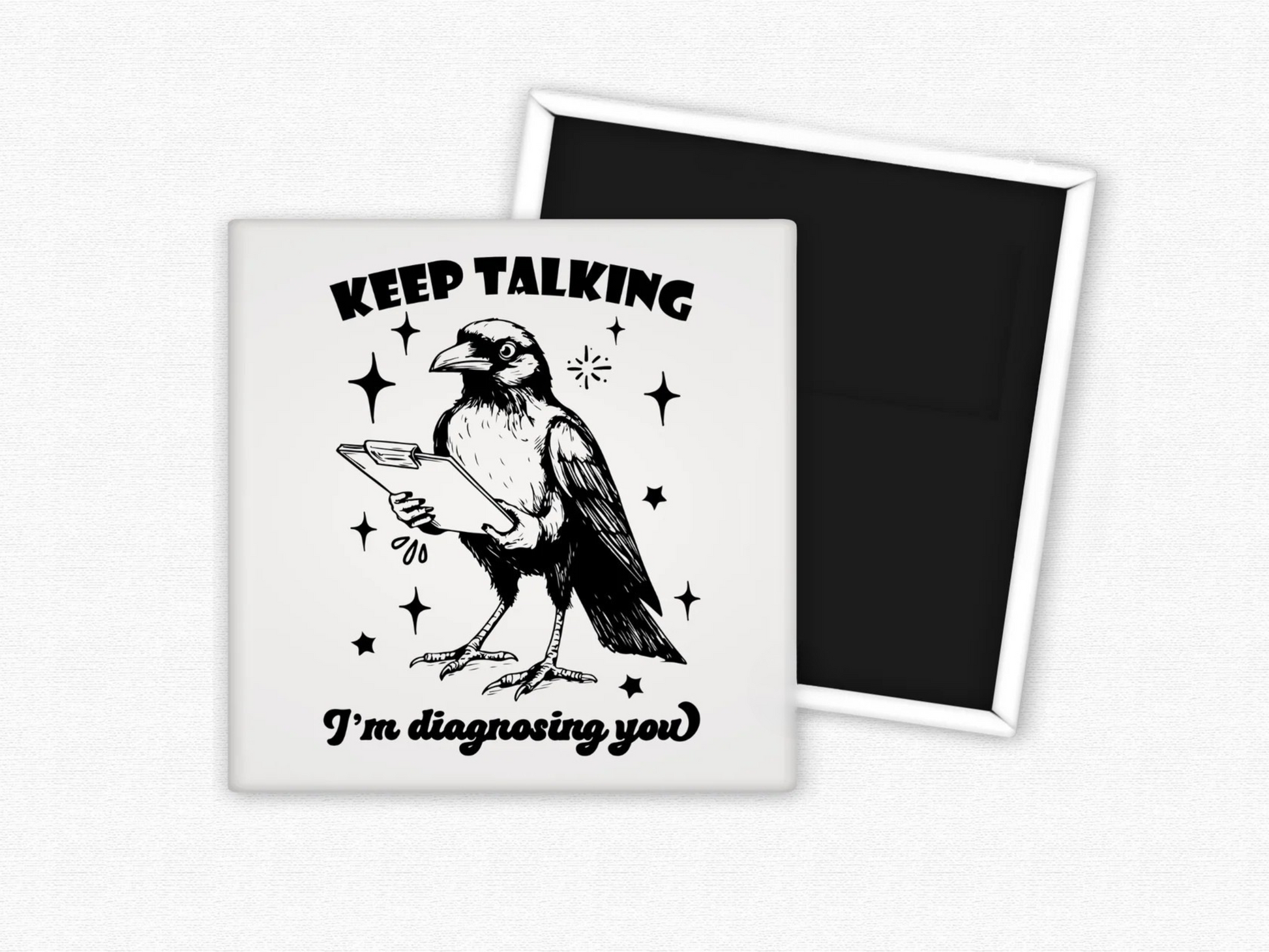 Keep Talking – I’m Diagnosing You” Bird Magnet for Fans of Sarcastic Humor