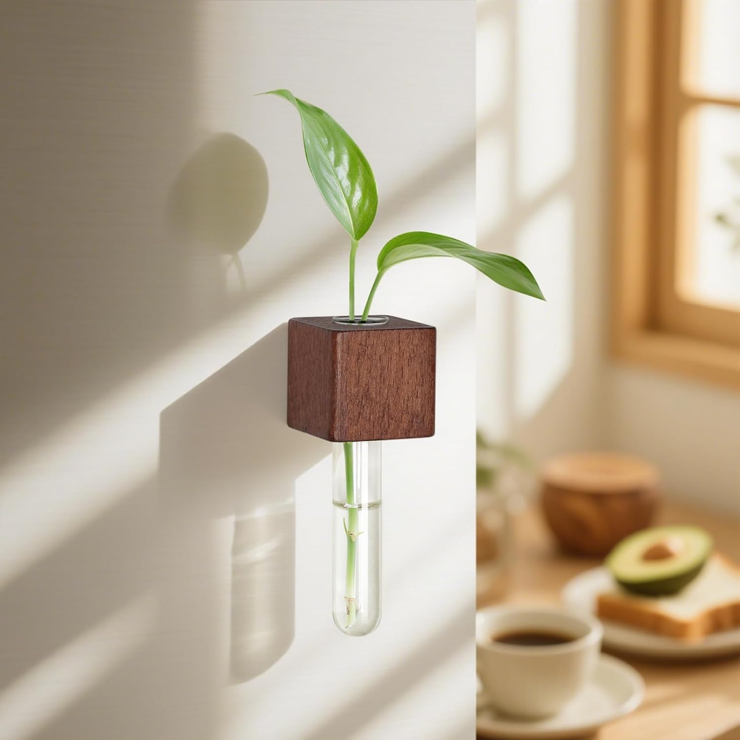 Magnetic Test Tube Flower Vases – Wooden Fridge Planters with Glass Tubes